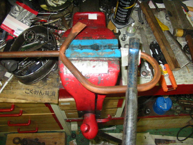 あ ヘッドが中々外れませんでした、 ゴムハンマーでトントンと。 バルブが閉まっている このままキックすると どうなるん? で キックすると バッカ〜ンとヘッドが外れました、 外すつもりでキックしたのでは有りませんが、こんな外しかた ええんやろか?・・・。 |