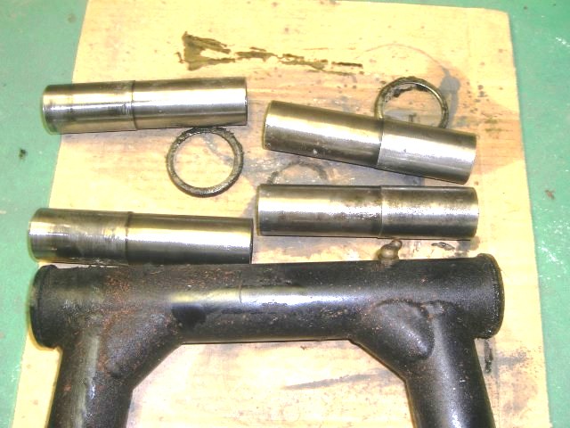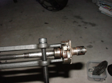 このリアショックの画像は、私の質問に合わせて入れてくださったのでしょうか。ありがとうございます。グロメットを犠牲にとはこういうことだったのですね。グロメットは手元になかったので、タイラップで固定し後で切ればと思ったのですが・・カバーがつくとどうにもならないことに気がつき、そのまま組みました。結構な力でロッドが縮んでいくんで、なかなか苦労しました。オイル交換後のリアショック、ダンパーがきっちりきいて、非常によくなりました。 Fフォークもオイル交換を行いました。路面からの突き上げがかなりマイルドになりました。「ガツン」のショックはステムナットの締め付けが弱かったのが原因でした。ステムベアリングを分解、グリスアップしたのですが、その際の締め付けが弱かったようです。とても走りやすくなりました。 この場をお借りし、もうひとつ質問してもいいでしょうか。リアホイールに、テーパーローラーベアリングが入り、巨大なナットで固定してあります。薄型のナットがダブルナットで固定するようになっているのですが、ここを特殊工具なしでうまく固定する方法はないでしょうか。マイナスでたたくにも下側になるナットが固定できず、ちょうどいいところで止まりません。何かいい方法があれば教えてください。前のステムベアリングもそうですが、ゆるすぎず、きつすぎずの締め具合がなかなかつかめません。 |